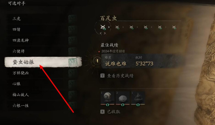 想要开启获取昆棍不僵的旅程,首先要找到本次更新新增的连战模式。在模式选择界面中,玩家需要精准定位到 “蛰虫始振” 这一挑战 —— 这是解锁昆棍不僵的唯一前置关卡,也是对玩家操作与耐力的双重考验。