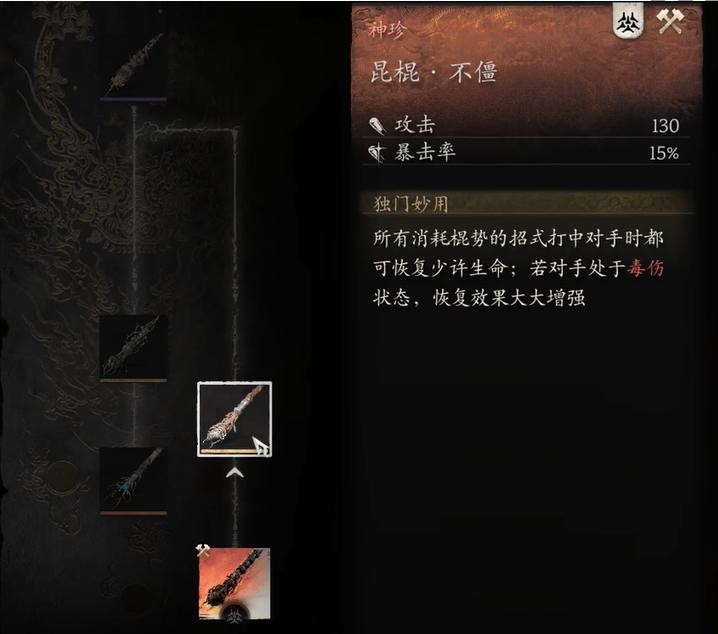 当玩家成功连斩六位强敌,完成 “蛰虫始振” 挑战后,就能获得制作昆棍不僵的关键材料。此时,前往游戏中的锻造界面,消耗对应材料即可将这把全新武器收入囊中。昆棍不僵的独特设计不仅在视觉上极具冲击力,其攻击动作连贯流畅,兼顾了范围与爆发力,无论是应对群敌还是单挑 BOSS,都能展现出不俗的战斗力。